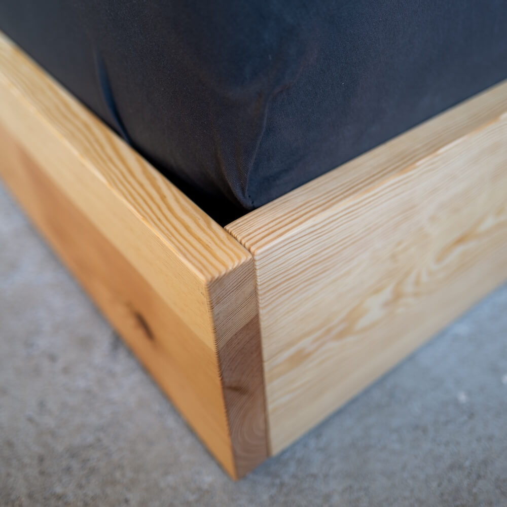Wir bauen unsere Massivholzbetten mit einer Einlegetiefe von 16 cm.