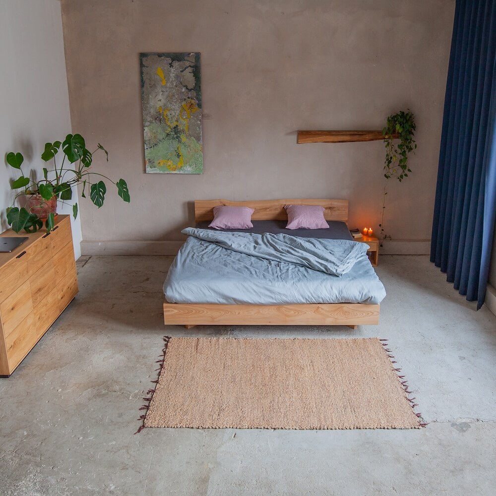 2015 machten sie ihre Leidenschaft zum Beruf: Mischa gründete Woodboom, Joschka schloss sich wenig später an. Seitdem entwerfen sie Möbel, die den Kreislauf achten – jeder Verschnitt wird weiterverarbeitet. Ihre Tische, Betten und Kommoden tragen die Narben des Holzes mit Stolz und sind für Generationen gedacht.